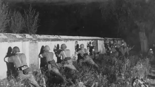 图中这段土石混砌的墙,开着一溜子枪眼,叫北大营围墙,当夜独立守备队第二大队贴着枯草潜行,士兵把步枪口紧紧抵在孔洞边,枪托磨得白亮,扣扳机前有人还咬着牙低声数一二三,这个姿势我外公说看着就冷,腰板一弯一晚,膝盖跟着打抖,墙根下的蒿草被火舌烤得卷边,天不亮,营门那边就乱成一锅粥了。
