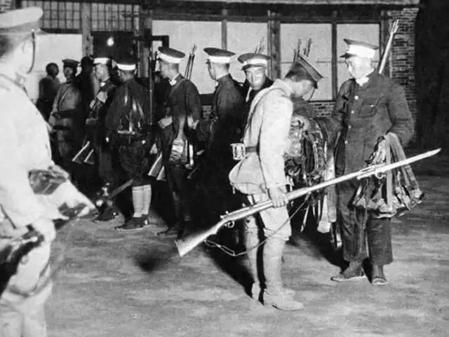 这张里的人穿的是警服,臂章还在,手里却抱着成堆卸下来的枪械,这些长家伙叫三八步枪,枪口细长,刺刀合上比人小腿还长,排在屋檐下,影子拉得老长,几个警察脚后跟并得紧紧的,像被喊了“立正”,我姥爷当年在沈阳当差,同事里有人那天没回家,母亲只说了一句,钥匙留下了,人却丢在城里了。