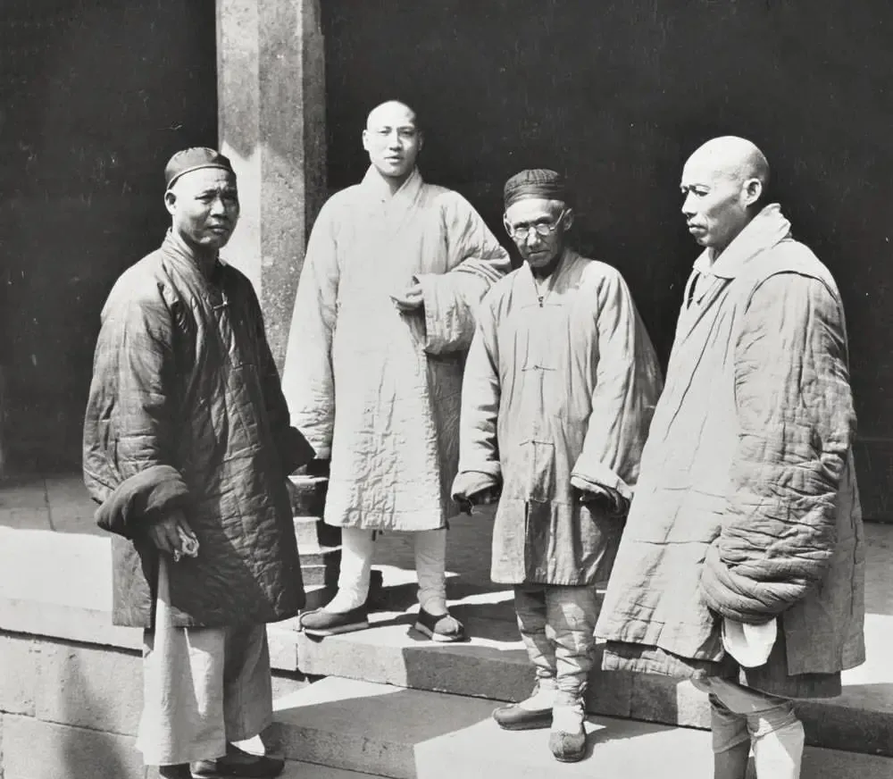 图中穿素色袍子的叫僧人,衣料是厚棉布,褶子一条条压着,脚上是布鞋裹腿,站在石台阶上,阳光一照,面相清清淡淡,左边那位戴着小圆帽,瞧着像是照相时刚把手从袖子里探出来,妈妈看过照片笑我,说以前做衣服讲究保暖耐穿,哪有现在这么多花样,那时候冬天靠棉层,现在靠空调。