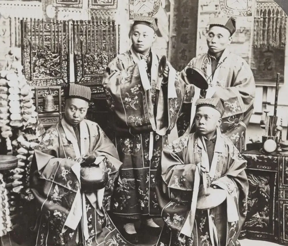 图中穿绣花大袍的叫道士,衣襟厚重,胸口绣着八卦与云纹,手里一只小铜铃一面木鱼,案上摆着令旗和桃木剑,师父站在桌角边抬眼望神位,嘴里念念有词,鼓一敲心口跟着“咚”地跳,外甥看了问我,这真灵吗,我说信的人有个寄托,以前请道场要张罗半条街,现在发个消息大家线上帮念,时代变了,心里的盼头却一直在。