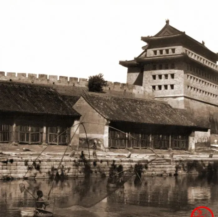这个高大角楼叫朝阳门,护城河水面一片铜色的亮,城门口有人支起搬罾,四根竹竿一抬一落,水哗地从网眼里漏回去,留下几尾小鱼在盆里扑腾,爷爷说那时候城里人吃粮靠漕运,门口一到开闸日就热闹,水上跑的多,岸上看的人更多。