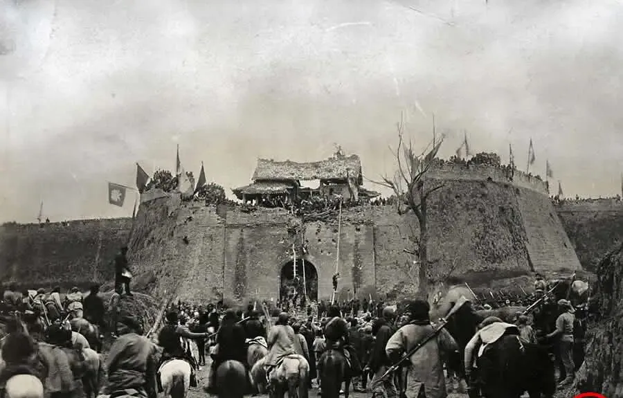 这处缺口就是城门洞,门洞上边的女儿墙被炮火咬掉了角,地上到处是碎砖石,士兵背着长枪,枪带磨得发亮,一队一队鱼贯往里冲,旁边的茅屋顶塌了一角,妇人抱着小孩蹲在墙根发愣,爷爷说打仗真不是电影,最先受罪的是房和庄稼,庄稼没有了,人心就散了。