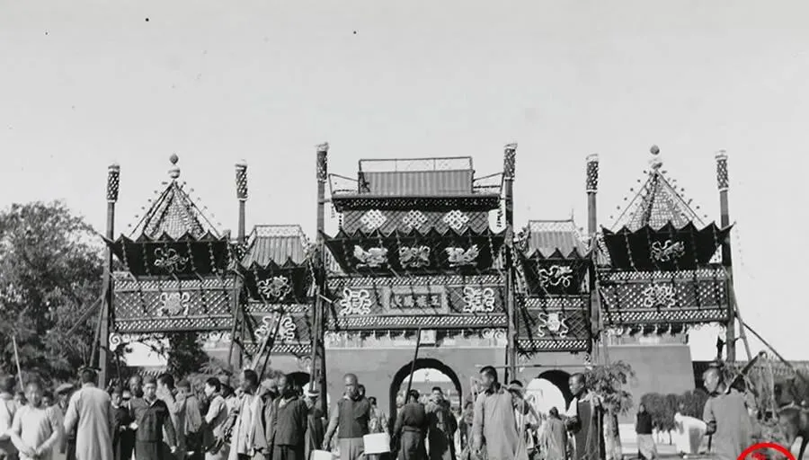 图里的大门楼子搭得挺讲究,木杆子扎成框,外面糊着绸缎和彩纸,狮子、葫芦、如意样样都有,横批写着字,大家抬头看,嘴里嘀咕着新名堂,老木匠站在旁边摸着胡茬说,这样的活儿活络手艺,可惜热闹一过,牌楼拆了,绸子收了,留在心里的就只是一句五族共和。
