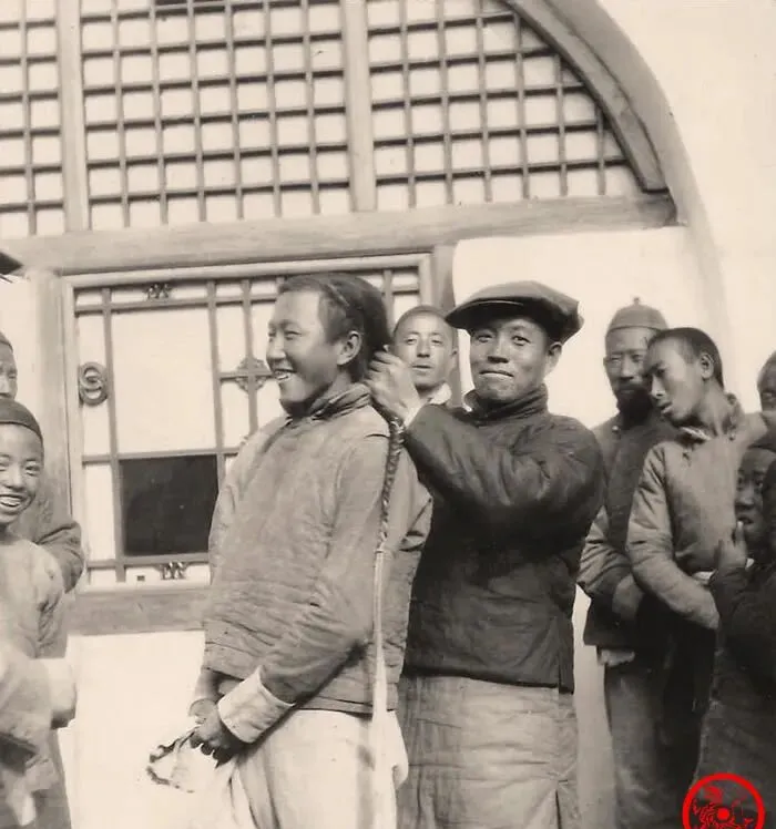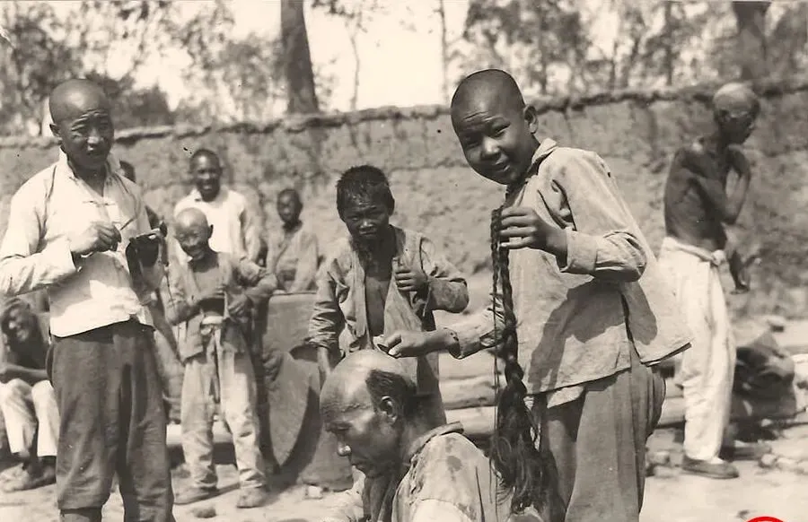 这个少年脑后这一条就叫辫子,油亮亮的黑发拧成绳子,发尾还打了个坠子,理发匠攥住根部,咔嚓一刀,嘴角一翘,这笑啊,是真松快,脖颈后那股凉风一下子透进棉衣领口,人也跟着挺起来了,以前辫子是规矩,现在剃了成了时新的体面,有人说轻了三两肉,我看是轻了三斤心事。