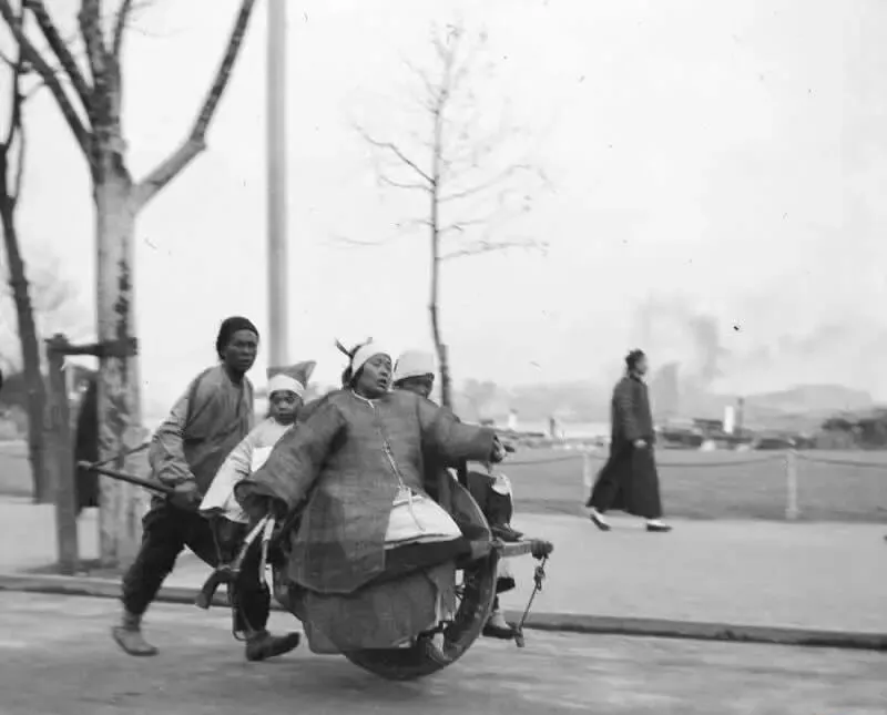这个黑匣子一样的叫小轿,前后两根抬杠,轿帘低垂挡风沙,街口一拐,后面紧跟着两轮的人力车,师傅弯腰蹬地,喘着热气往前冲,那时候马路新修宽了,人力车来去自如,出门办事讲究一个快当,轿夫却越发清闲,叔伯打趣说,韵味是有的,赚头是没了。