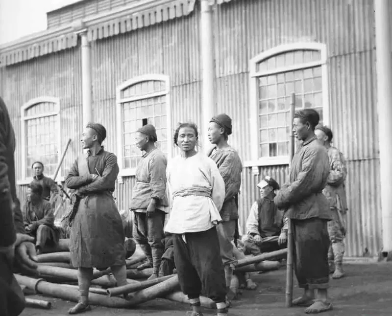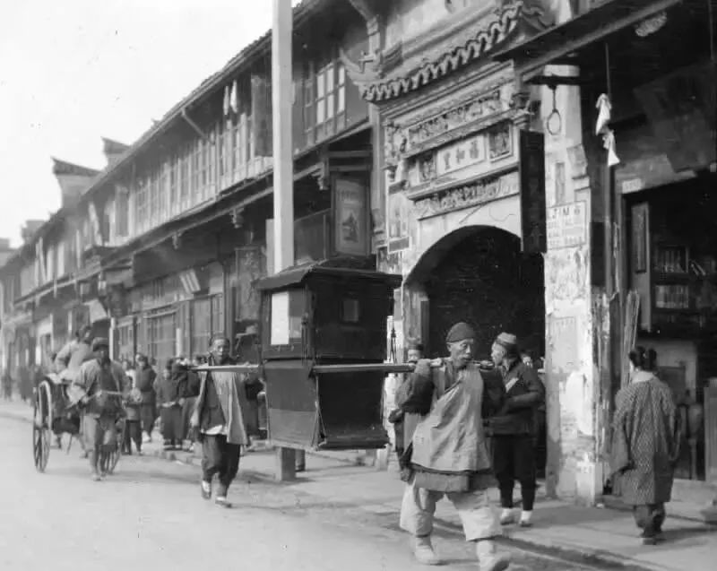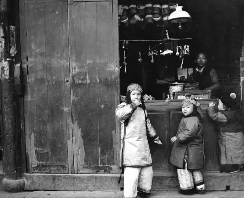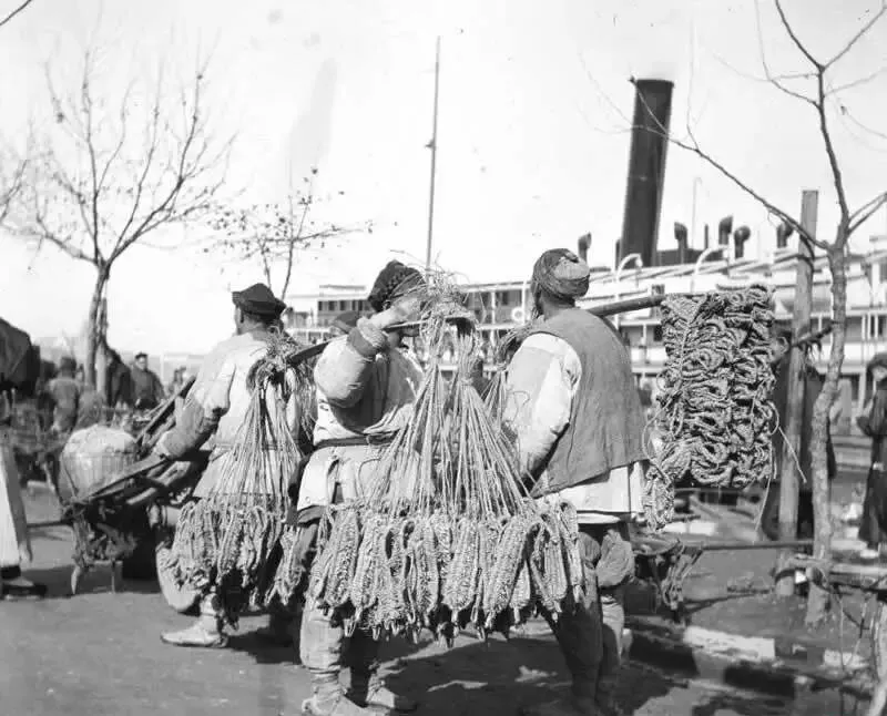 老照片:慈禧太后执掌朝政后期的社会面貌,男人大辫子泛油光。