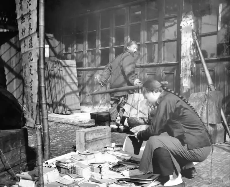 这个地摊就是旧书摊,摞得高高的线装本上落了尘,男人半蹲着翻页,他那条大辫子油光锃亮,甩在背上像条黑带子,摊主一手拨书一手接钱,抬头就问,要不要《四书》《二拍》,我小时候跟着爷爷淘旧书,最爱听摊主喊价,一口一个整段儿的,拿回家一吹灰,全屋子都是墨味儿。