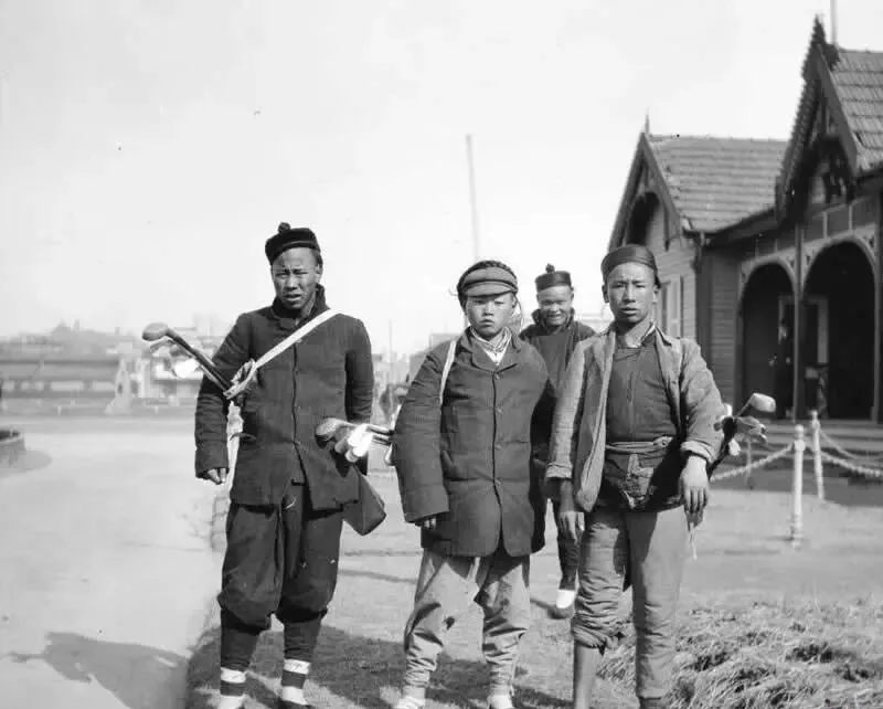 照片里扛着杆子的几个小子叫球童,粗呢衣裳外面斜挎布带,杆头冷不丁在阳光下一闪,地方多半在租界边上,雇主一句唤,孩子们撒腿就跑,跟着走十八洞,日头一落才收工,爷爷说那会儿见识了洋人的玩法,可自己兜里只多几枚铜子儿。