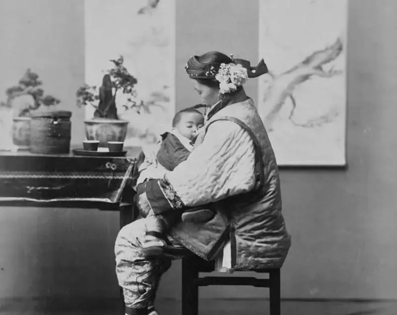 这个抱着孩子的妇人穿着马蹄底鞋,鞋尖微微翘起,袖口滚了细花边,一朵白绢花别在鬓边,坐在条凳上轻轻晃着身子,孩子脸贴在她棉袄上,咕噜噜地打着小呼噜,姥姥看着总要感叹一句,那时候没奶粉没尿不湿,全靠一双手,一张怀,把日子哄睡着,现在工具多了,抱法反倒少了。