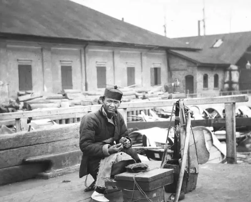 坐在木箱上的这位是鞋匠,手里攥着锥子和麻线,膝盖上压着半只鞋底,旁边立着补鞋架,箱子一开,胶水味就冲出来,他一边穿线一边抬眼问,钉掌还是纳底,我记得小时候跟着爸去补鞋,等他把掌钉紧,鞋底“咯咯”直响,穿起来像踩着小鼓。