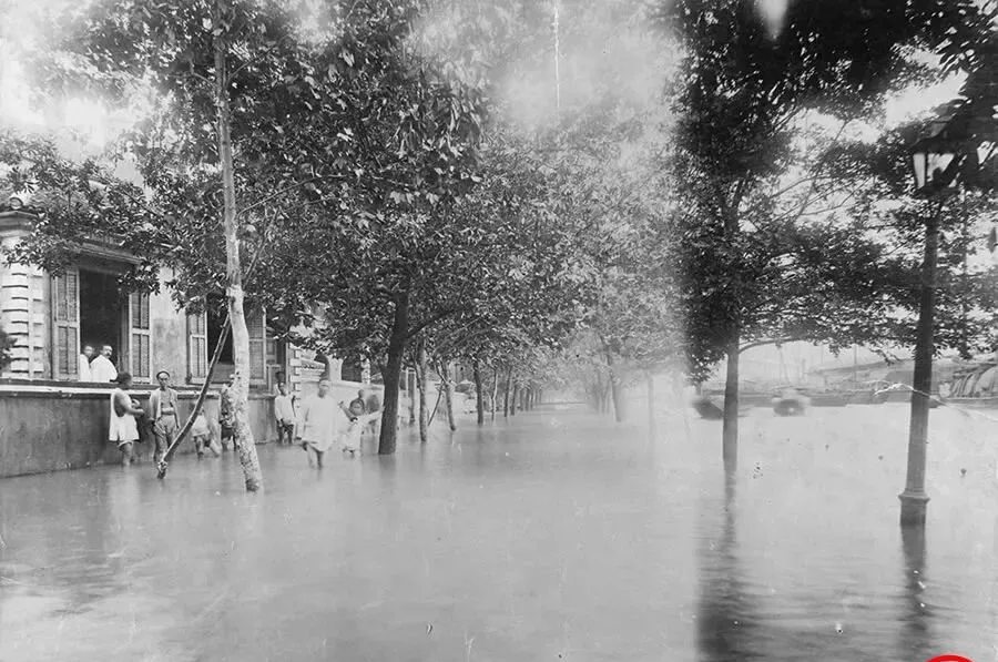 老照片:晚清江西九江社会面貌,洪水淹没街道。