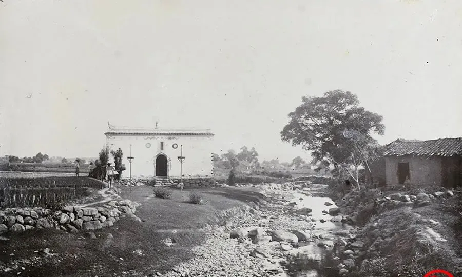 这间白墙小庙挨着石滩小溪,门口插着两根旗杆,屋檐压得低,溪水从屋侧绕过去,碎石滚在水里咔啦响,田埂上长着青禾,风吹过亮晶晶的,村里人赶集路过会在庙前磕一磕,求个风调雨顺,庙里香炉是青铜的,摸上去凉飕飕。
