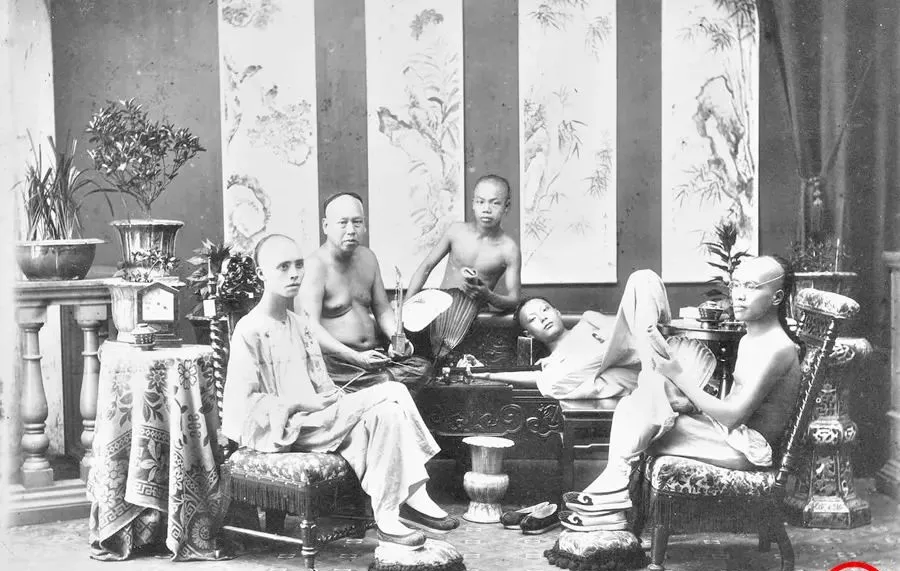这屋子里的摆设叫时髦,西式钟、中国盆景、绣椅垫子,一样不缺,几位男子或坐或躺,有人捧书装作读,有人捏着扇子轻摇,角落里那位半倚着榻抽大烟,烟枪头一点亮火,屋里云雾绕得跟戏台后场似的,奶奶叹口气说,这玩意儿最耗人,先是瘦,再是虚,最后是把家底一点点搭进去。