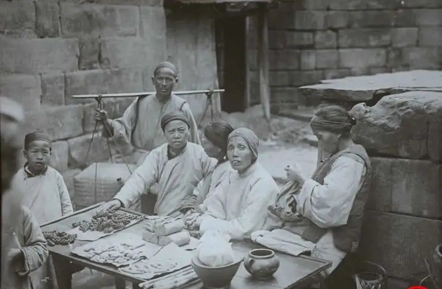 有些旧照片一翻出来,人就会安静下来,砖墙粗粝的缝隙,麻绳捆着的挑担,孩童的目光直直看着镜头,这些细节一下把人拽回去一百多年,很多场景现在看着有点不可理喻,可彼时就是这样过日子的人间烟火。