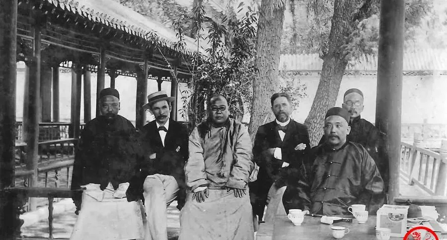 图中这套茶具叫盖碗,白胎青花,碟托稳当,桌角还放着方巾,男人们围坐阴凉处,洋客戴草帽留胡子,衙门院里树影筛下来一片片,话头子多半从通商说到利权,再兜回来问价讲章程,外头人来人往热闹,里头一盏清茶压住火气,该谈的慢慢摊开。