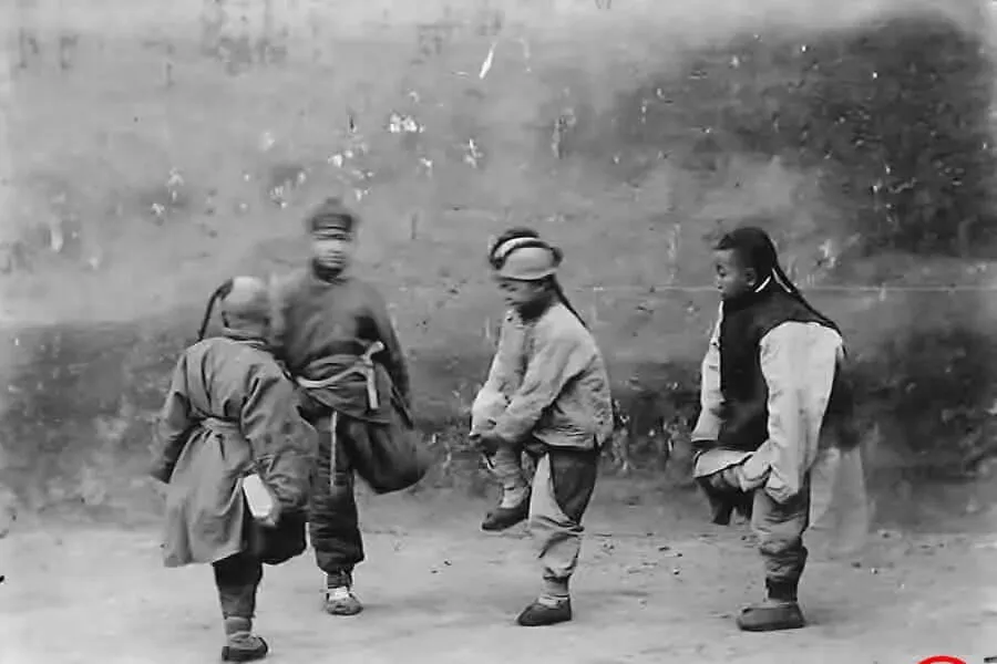 这个游戏叫撞拐子,比的是谁的膝盖硬谁的步子稳,先把一只脚抬起来抱住,再单腿蹦着往前顶,叭叽一声要是脚落地就算输,墙根儿处最热闹,鞋底拍尘土的声音一串串,我小时候也学过两下,结果一头栽进土里,奶奶笑我说这玩意儿讲究“腰上有劲儿,心里不慌”。