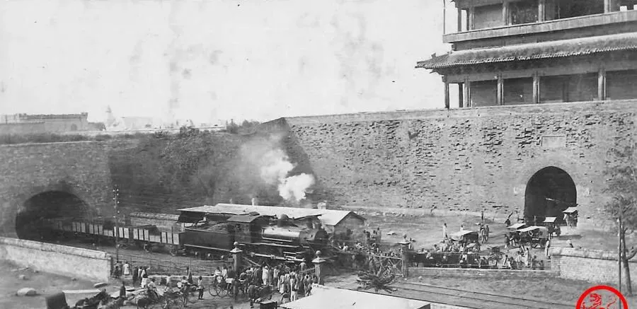 这个黑家伙是蒸汽机车,烟囱一冒就是浓云,城门洞旁装了木闸,守闸的看准时辰放行,火车轰隆一过,赶车的再挥鞭穿过去,那时候铁轨直插城根,听说还是先打通了瓮城才铺进去的,如今高铁嗖地一下,你连窗外影子都抓不住,当年人却要在道口候半天,就等一班慢悠悠的货列过去。