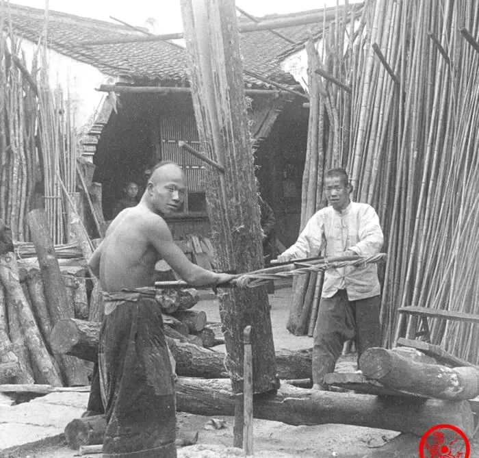 这个场面我熟,原木横在锯架上,两人一前一后扯长锯,锯条起落像在拉弦,锯屑子一股股往下冒,腰间系块布,挡住汗水顺着肋骨往下流,师父先在木头上打好墨线,跟线走,板子才能不飘,爸爸说配合要默契,前头一沉后头就要提,稍一走神,锯齿就咬斜了,一块好板,靠的是两个人的呼吸。