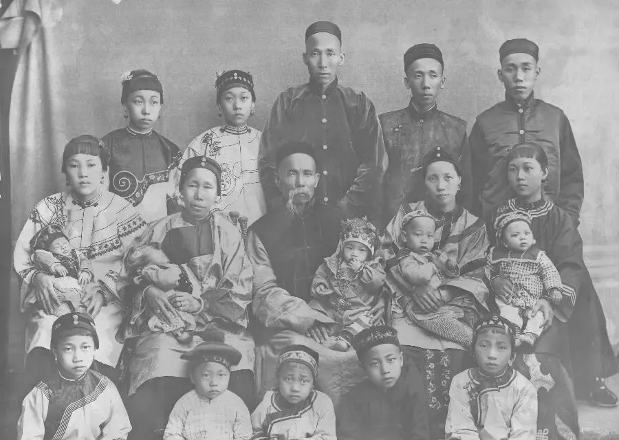 这个温吞的院子里坐着的一家人叫汇文大学堂教师一家,方桌没摆,门楣上的木雕花可真细,男人穿着长褂靠着柱子,女人抱着孩子,孩子的眼睛像两颗黑豆儿,笑着又不敢笑开,奶奶以前最爱摆这种合影,说人一多就热闹,照片能把日子定住一会儿,咱现在拍照一秒十张,以前一张要端着不动,连呼吸都要轻一点。