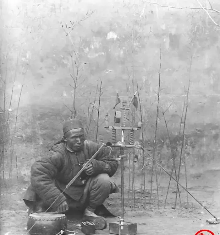图里这杆细长的支架和小塔、小桶连在一处,叫耍耗子的道具,老鼠被训得像小工兵,沿着小梯子钻圈、汲水、打秋千,锣一敲便开场,奶奶说她小时候赶集最盼这个,兜里揣两枚铜子儿,站在最前面看得咧嘴直笑,艺人收摊时把老鼠放回木箱,盖子一落,吱吱声还没停,转身就去下一条胡同了,现在说起表演,都是舞台和屏幕,当年的把戏挪个地方就是一场戏。