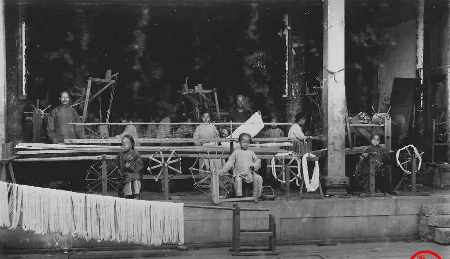 这间昏黑的屋子里整排的木器叫纺织器具,织机、纺车、绕线架,孩子们坐得直直的,手上绕着雪白的线束,脚下“哒哒”踩着木踏,线团从指缝里过时像细水流,照片边角还有晾着的绵线,老师傅站在后面不吭声地看着,小时候我在姥姥家试过纺车,手一急线就绕成一坨,姥姥在旁边笑,说**“慢点,线自己会听话”**,现在一台电机就能把速度拉满,当年的耐心才真值钱。