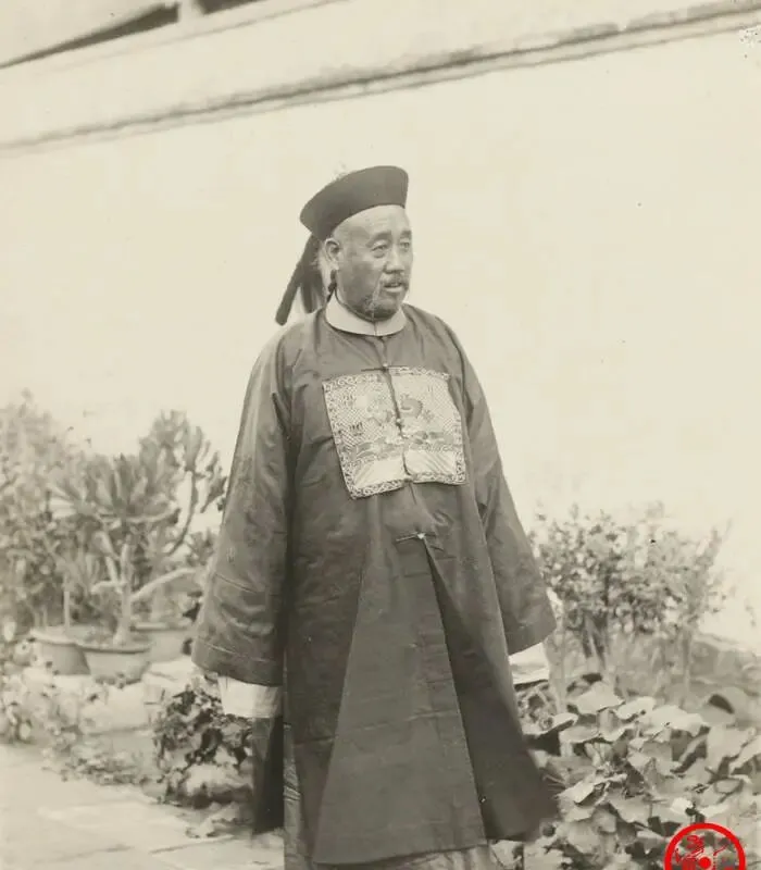 图中这个穿长袍马褂的叫清代武官,胸前那一块方形织补是补服,织着禽兽纹样表品级,衣料厚重却明显旧了,袖口磨得发亮,帽子斜斜戴着,神情有点疲倦,爷爷看了说,这身行头走在街上威风是有的,可真要带兵上阵就悬了,官场讲排场,军伍讲本事,以前混着来,现在讲究实战,这差别一眼就看出来了。