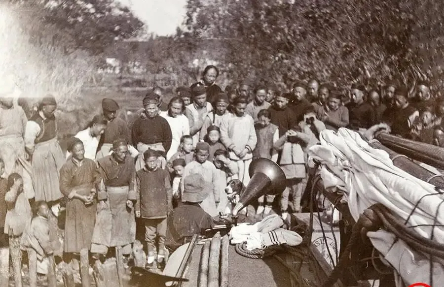 这个带喇叭嘴的家伙叫留声机,船一靠岸,欧洲人摇起把手,唱片吱呀一转,哗啦一下人就围上了,男女老少把甲板挤得满满当当,谁都想凑近听一耳朵,奶奶说当年村上第一次放留声机,她躲在人群后头,不敢往前,怕那玩意儿把嗓子给吞了,现在手机一放就是百万曲库,以前一张唱片能把全村人叫来,热闹是真热闹。