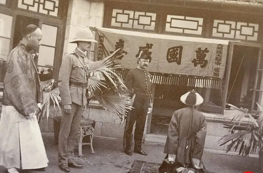这张最扎心,地上伏着的是地方官吏,身后横幅写着**“万国咸喜”**,两名洋兵站得直挺挺,帽檐压着眼睛,姿态冷淡,外公摇头说,当年这一下头磕得不光是人低了,气也短了,后来我们才明白,低眉顺眼换不来体面,还是得自己硬气。