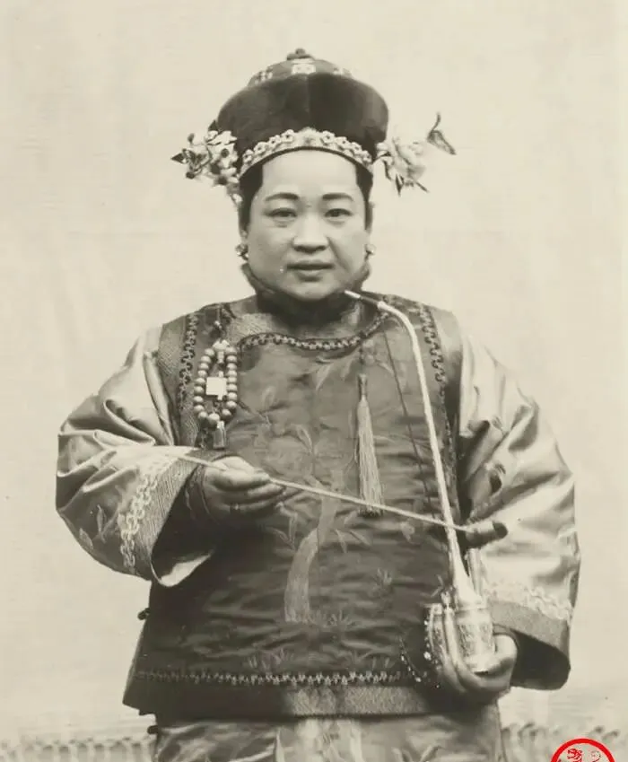 这个长长的金属杆叫烟袋,嘴头细,烟锅搭在小银壶旁,贵妇的头面沉得很,绣花坠子垂在鬓边,她捏着烟袋的手指肥润,指甲套亮闪闪,听姥姥说,旗人姑娘出嫁,陪嫁里少不了一杆精致的烟袋,媳妇给公婆装烟是规矩,现在谁还这样啊,抽的改成了电子雾化,味儿淡了,讲究也散了。