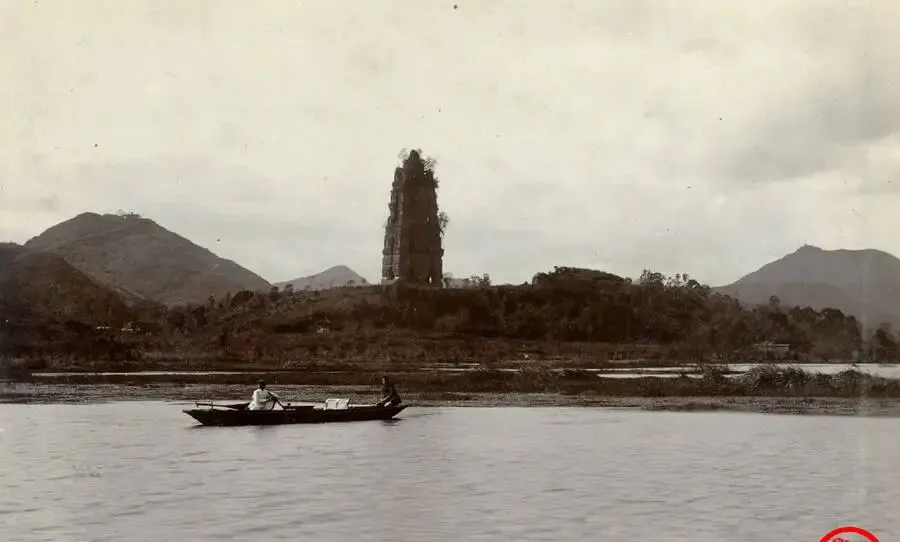 这张远远拍着的叫雷峰塔,瘦高的塔身像被风蚀过,外墙斑驳,塔脚边荒草挺立,水面上划过一条小船,船夫站在尾部撑篙,小时候我第一次去西湖,望见的是重修后的灯火辉煌,现在回看这张,才知当年“雷峰夕照”的味道多半在凋敝里,夕光一照,破也成景。