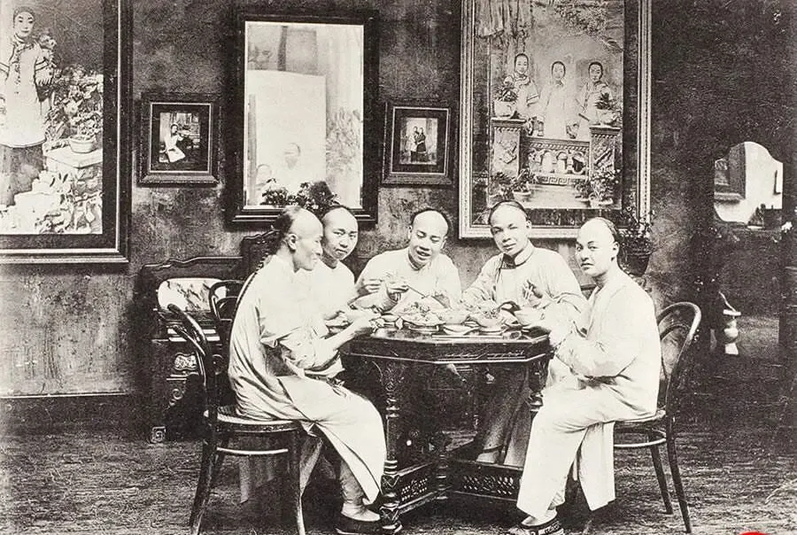 这桌子是八仙桌,四边各一人,盘碟摆得满当当,墙上挂着几幅仕女像,镜框油亮,端茶递碗的动作都像排练好的一样,我小时候跟着舅舅去影楼拍全家福,也被师傅摆过手位,左一点右一点,筷子再举高半寸,笑不出声,只能把嘴角提着,拍完才敢喘气,可那张照片现在翻出来,还是暖的。