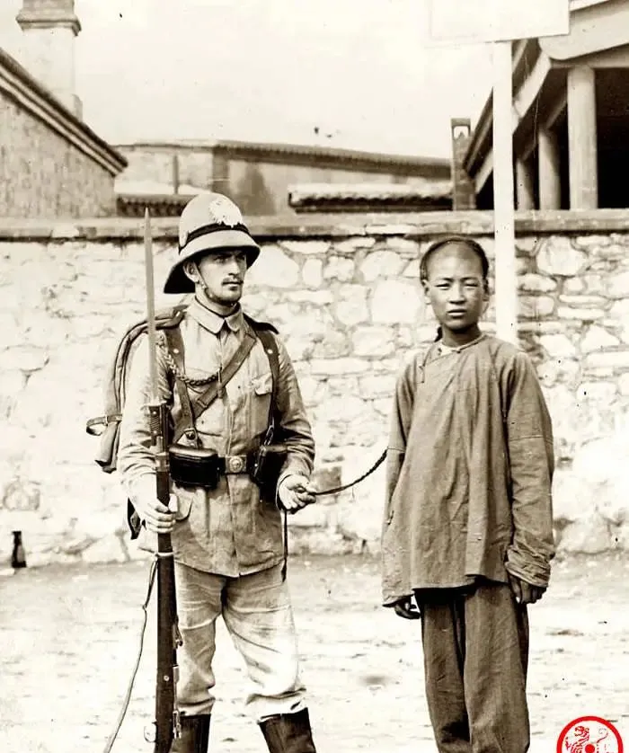这张里,外兵手里拽着少年头上的辫梢,脸上一副打量人的劲儿,步枪笔直杵地上,皮带和弹 pouch 系得紧紧的,少年的衣裳是土布长衫,袖口发亮是常年磨出来的光,爷爷看这张图时就嘟囔,说那会儿一根辫子,不只是头发,也是裹在脑门上的羞与怒,以前留辫子是规定,现在呢,孩子们剪寸头跑得比风还快。