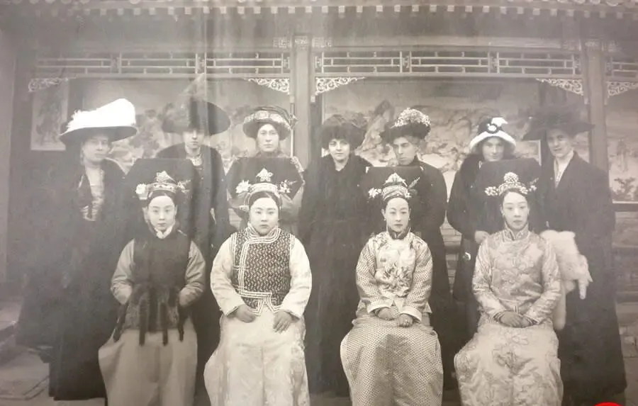 前排是袍裙滚边的女眷,腰里束着软甲样的坎肩,头上花朵一朵压一朵,后排西式帽檐宽得像小船,羽毛沿着边打弯儿,坐与立之间,礼数都在眼神和手指尖上,姥姥爱看这张,说那会儿开始学会请人来家里坐坐,送一件小东西,张口闭口就是客气话,现在人交朋友,一条信息就拍过去,快是快了,味道淡了些。
