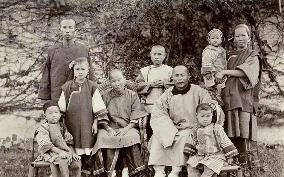 老照片:晚清社会百态,三代同堂大家庭合影,鞋匠脸上写着沧桑。