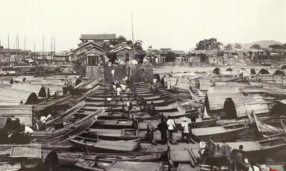 这条铺在水上的叫浮桥,一只只梭船横着排,棚篷像鱼鳞,一合就是路,一开就让大船,桥口的门楼端着脸,行人肩挑背驮全靠它过江,我小时候去集市走独木桥都抖,想想在这桥上推独轮,得多会找平衡,现在修了大桥,车一下子窜过去几公里,老桥还在,更多是给人看个样儿。
