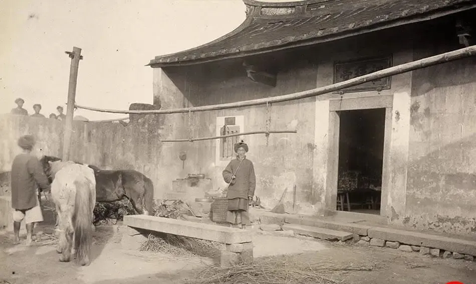 这处院子叫乡间宅院,檐角翘起像燕尾,门楣上有匾,墙垣处搭了长长一根竹管,像是接水的引流,门前石条当长凳,左边拴着一匹小个头的马,伙计在给它理缰绳,站在中间的男子提着篮子准备出门做活,地上稻草零散,生活的气息一眼就来,现在的院子爱铺地砖,扫一圈就亮堂了,干净是干净,泥土味儿是真少了。