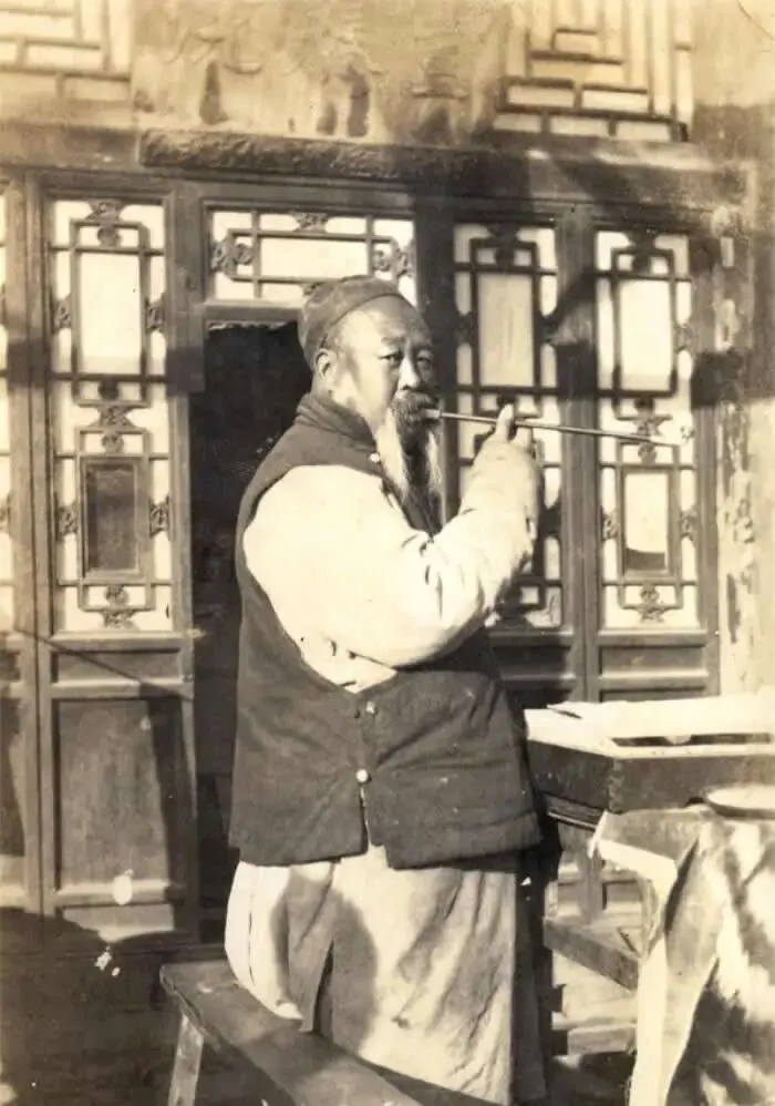这个赤膊坐着的就是木匠,辫子没了,前额短毛刺刺的,手里一把半新的斧子,脚下是榫卯打样的木墩,门板裂着缝,屋里飞着细细的锯末,师傅抬眼瞅你一眼又低头琢磨榫口,过了两百多年的剃发规矩一朝作古,发型能自己做主了,活计也跟着新规矩慢慢变样。