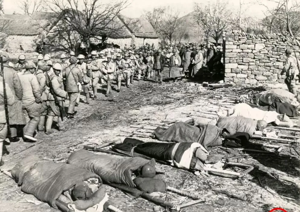 图中这些竹木拼的担架叫抬架,横木两根,绑得紧紧的,粗毯裹着伤员,脸都没露出来,只露一截鞋尖,边上士兵排队走过,谁都不说话,只把枪背得更牢一点,冷风一吹,草屑在地上滚,像是把人心里的暖气也卷走了。