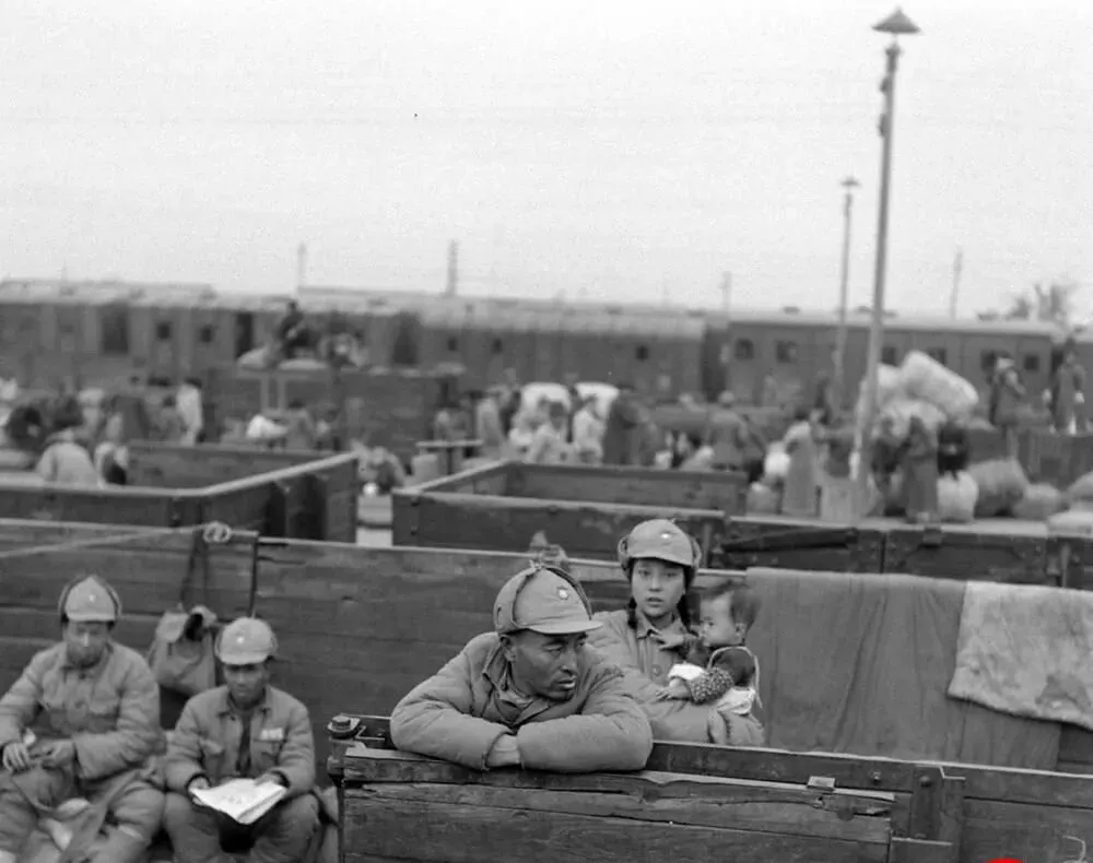 这列车皮叫棚车改敞车,木板边坐满了人,棉帽一色扣得很低,谁手里也攥着个搪瓷缸子,列队长到看不见头,车一开,风从缝里灌进去,冻得人眼泪发酸,以前坐车是出征,锣鼓喧天,现在坐车是跑路,连口号都懒得喊了。