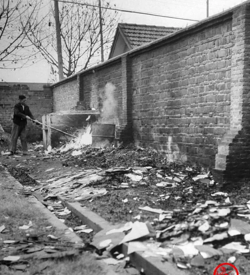 墙根下这一堆叫机密档案,木箱掀了盖,火舌往上窜,纸张卷成卷,边一焦就碎,拿钩子的人不停翻,生怕落下几页,火光一亮,墙缝像开了口,风顺墙走,带着灰烬往天上飘,飘着飘着也就什么都没了。