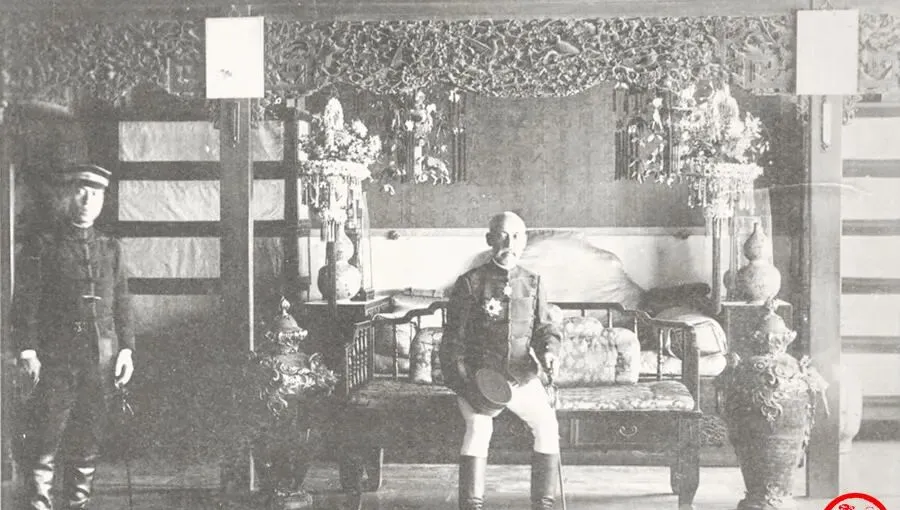 图中这间屋子叫光绪寝宫,雕花顶罩压着,屏门后头是软榻,靠垫团团的,正中坐的是外来的军官,帽子捏在手里,身旁摆着大肚瓷瓶和多层攒框的花几,原本这里只听到内侍说话的气声,现在倒好,靴跟在地板上咯噔作响,我奶奶看过类似老照,摇头说,这一下把规矩都踩扁了。