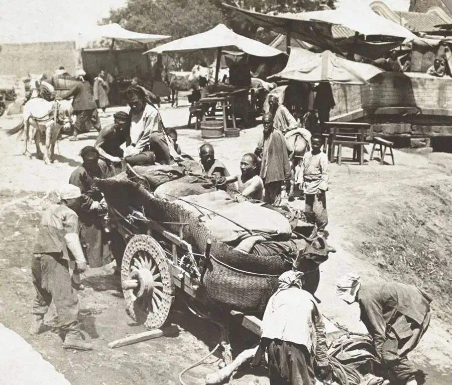 晚清老照片:乞丐晕倒街头奄奄一息,车夫胆大包天在午门揽客。
