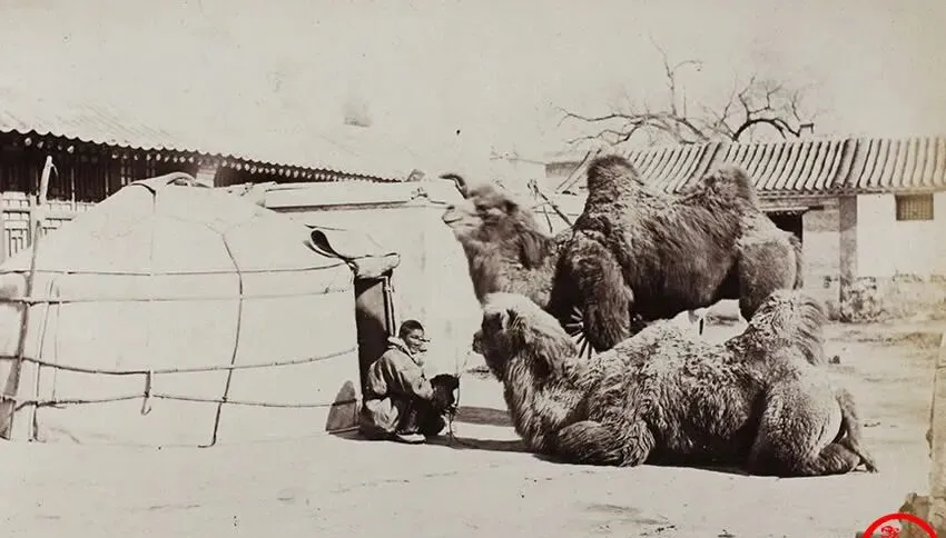 图中这顶圆滚滚的毡包叫蒙古包,旁边那几位主角是双峰骆驼,毛色发灰、身形高大,跪地时前腿弯得利落,背上的鞍具和绳索压出一道道印子,老照片里的人蹲在门口,手里揣着辔绳,像在跟驼子嘀咕两句。赶运的活儿可不轻松,盐巴、皮毛从北面一路压来,回去再把茶叶瓷器驮回去,一来一回得走上月余,奶奶说那会儿院口一响骆驼铃,孩子们都追着跑,说骆铃的声儿好听,像风吹冰碴子。