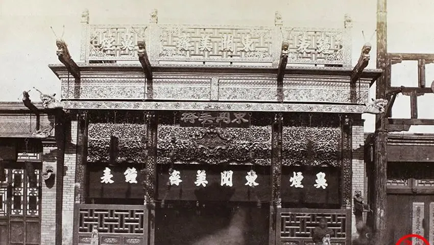 这家雕花铺面叫闻美斋,主卖鼻烟壶,还兼着钟表,门楼上铺着细密的木雕云纹,顶端立着小兽,黑底金字的匾额往外一晃,像给人眨眼。以前逛这类店,掌柜穿马褂,手里一串算盘子儿来回拨,叮叮当当地响,客人蹭着门槛看货,讲价得讲到茶凉,现在网店一滑,手指头替嘴说话,便宜了,却少了当面斗心眼的乐趣。