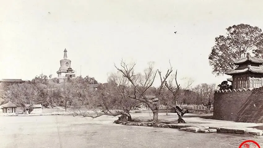 这个大片空地是清漪园,也就是后来重修成的颐和园,万寿山在正中,山腰上本该挺立的佛香阁成了黑影,远远能看见十七孔桥抽着长弧,湖滩干得发白,堤边树都只剩秃杈子。照片里没有游人,只有风,英法联军闹腾过一回,院墙缺了口,石条横七竖八躺着,家里老人指着这张说,看着荒,可气口还在,后来一修整,又活了。