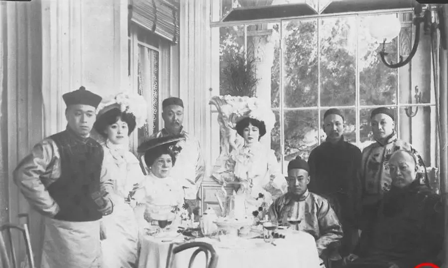 这桌子叫西餐景儿,玻璃窗子大到地,纱帘收着,花束高高插在器皿里,载振和同伴站坐分明,边上几位女士羽毛帽和蕾丝领像舞台道具,杯脚细长的高脚杯里有浅浅一层酒,摆拍味儿很重,但那阵儿确实看了世面,他回国后嘴上不落地,说铁路要修,商部要立,听着像样。