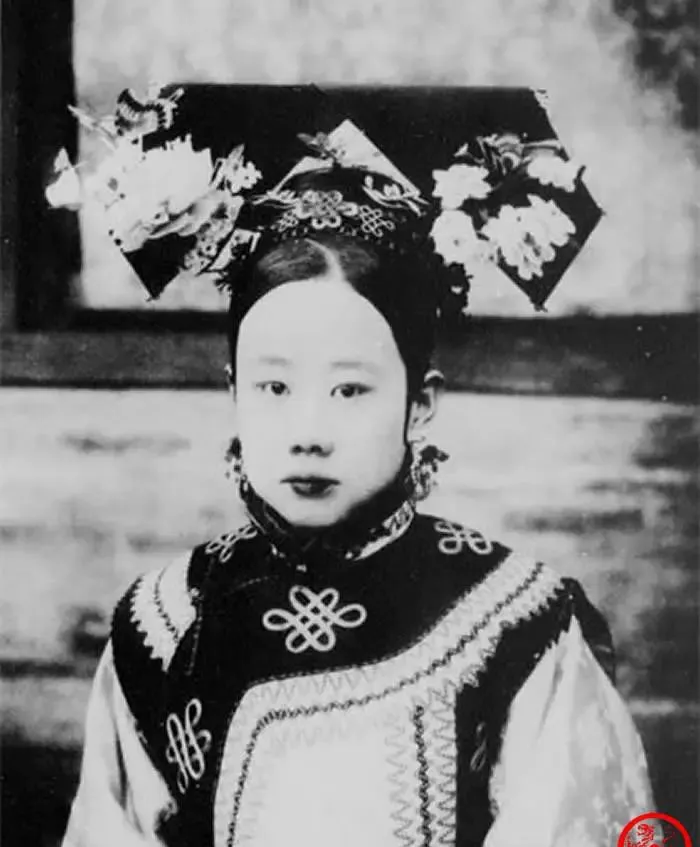 图上这位簪花叠翠的女子是他的嫡福晋,发冠两翼张开,坠子垂在鬓边,团寿纹的马甲压住里层织金襟口,年轻的脸蛋稳稳当当,看得出家风里讲“整齐”两个字,妈妈看这张时说,闺中女学先学不露声色,公门里头的是非风浪,身段要稳,这句话搁谁身上都不吃亏。