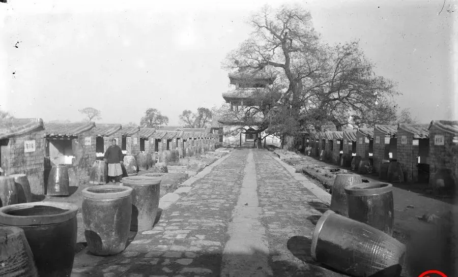 图中这一字排开的房格子叫考棚,两侧砖墙低矮,中间石道直通明远楼,最扎眼的是那些黑亮的大水缸,肚大口圆,缸沿被岁月磨得发滑,老辈人说,这缸一是给考生舀水用,二是防火救急,考期紧张,巡棚的差役拎着铜瓢咣当咣当敲缸沿,听声就知道谁家水满了谁家该添了,我小时候翻爷爷旧书,夹页里还压着他参加县试时的号牌纸,说起这贡院,他就摇头笑,“人一多,墨一呛,脑子就不转弯了。”。