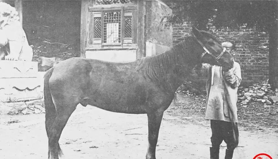 图中这匹高挑的马叫赤龙,产自伊犁,骨架匀称,脖子上鬃毛像被风梳过的波纹,鼻梁上勒着缰绳,驯马人拽着缰头站在一旁,不吵不闹,只看着镜头,老辈说这种马耐跑,长途折返不喘粗气,御马原归上驷院喂养,地点在东华门里侧,想想现在城里骑行都讲轻量化,当年人家早就追求的是耐力和稳当。