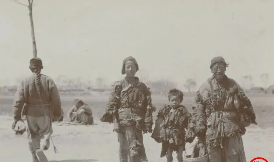 图中这身烂得一团的是破棉袄,棉絮结成块,袖口全是毛边,小孩儿的裤腿短到脚腕,手里提着个破竹篮,风一过,衣襟像树皮一样抖,话不多说,照片定住的冷,比文字还硬,想起那句老话,年景一紧,连粥都稀,放在现在,厚羽绒一件就能扛过去了。